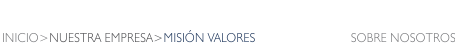 VALORES RESPETO, hacia las personas y sus costumbres del ámbito donde trabajamos; hacia nuestros trabajadores y sus objetivos de superación; hacia nuestros clientes y los objetivos que esperan alcanzar con sus proyectos. RESPONSABILIDAD, para cumplir nuestros compromisos estando convencidos de que aportan valor a nuestros clientes. MEJORA CONTINUA, con la que daremos crecimiento profesional a nuestros colaboradores y obtendremos mayor confianza de los mercados en que participamos. SEGURIDAD, para todos los trabajadores involucrados en el proyecto, de acuerdo a la normatividad vigente. |